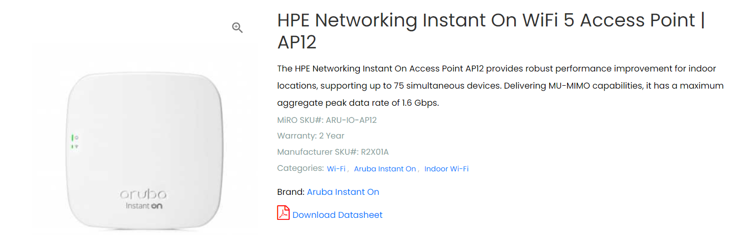 HPE Networking Instant On WiFi 5 Wave 2 Indoor Access Point | AP12