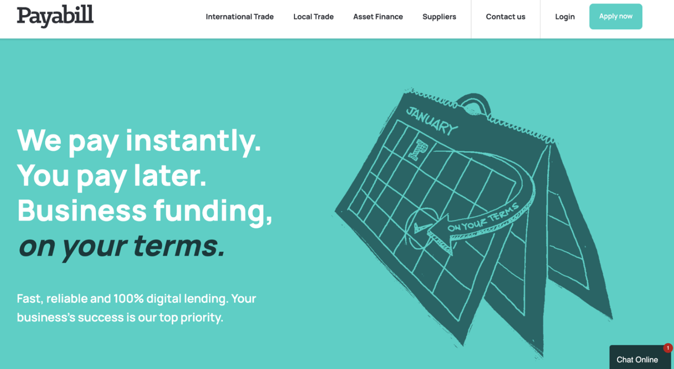 Payabill offers fast, reliable and 100% digital lending. Your business success is their top priority.