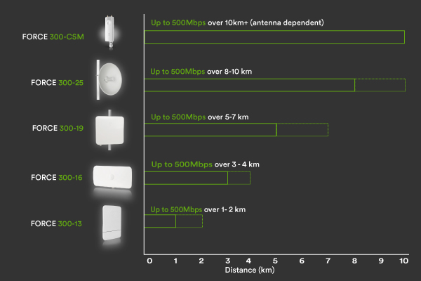 Although Cambium’s Force 300-25 has been the go-to subscriber module for the ePMP range. Cambium noticed that there was a demand for more versatility within the Force 300 range and expanded it to now include subscriber modules that excel in long-distance as well as shorter distance applications – where a high gain subscriber module may be overkill.