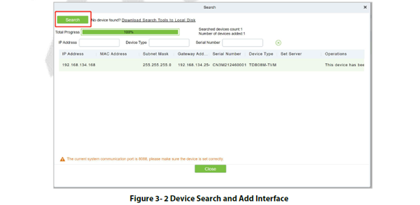 Through the search method, the access control devices that have been set to point to the server can be found, and the access control devices that have been searched can be added directly, which is convenient to operate.