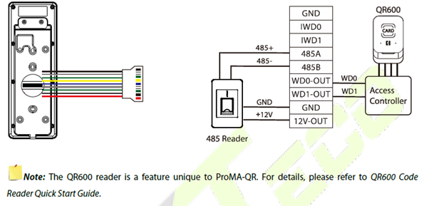 The RS485 lets users connect to multiple readers to the device. RS485 can be connected to the terminal, as shown in the figure below.