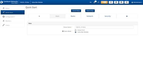 Under Quick Start, ensure that the Radio Mode is changed to Subscriber Module