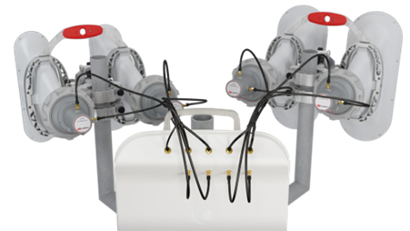 Deploying the ePMP 4500C with two identical 4X4 Horn Array Antennas in single-sector mode provides the best throughput for a single sector and maximises density across a limited coverage area. Available in 90°, 60°, and 45° options, mounting two antennas in the same direction allows the ePMP 4500C to function as an 8x8 Horn Array.