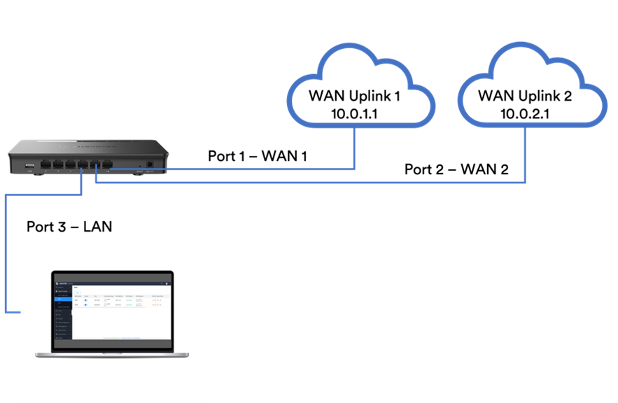 Testing two WAN uplinks to the GWN network from different providers on Port 1 and Port 2 respectively and LAN DHCP on Port 3 and checking the configuration of automatic failover between the two WAN uplinks as well as how quickly the changeover happens between the two WAN uplinks.