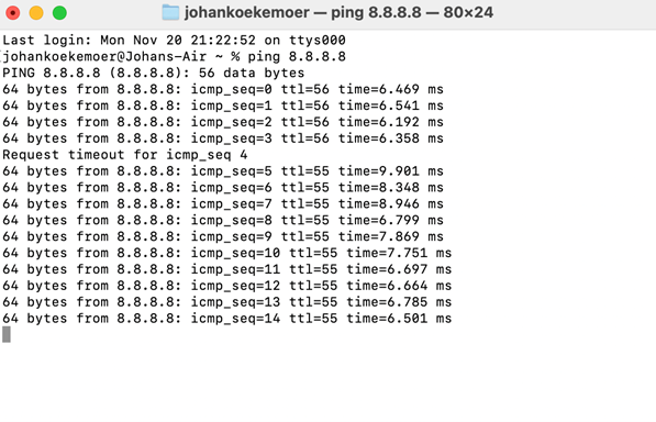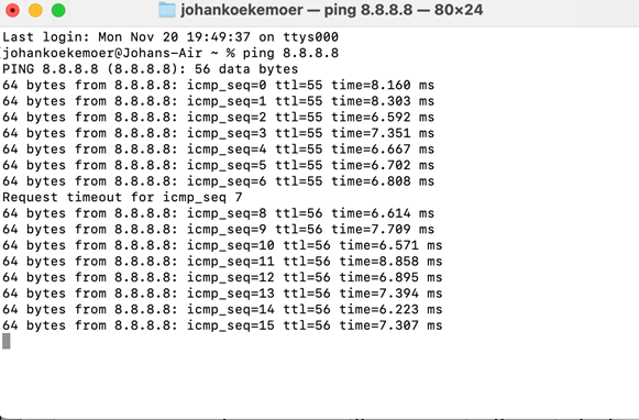 The WAN failover is automatic, there is no additional configuration required on the router. To test this, we disconnected WAN 2 while running a continuous ping test to Google: