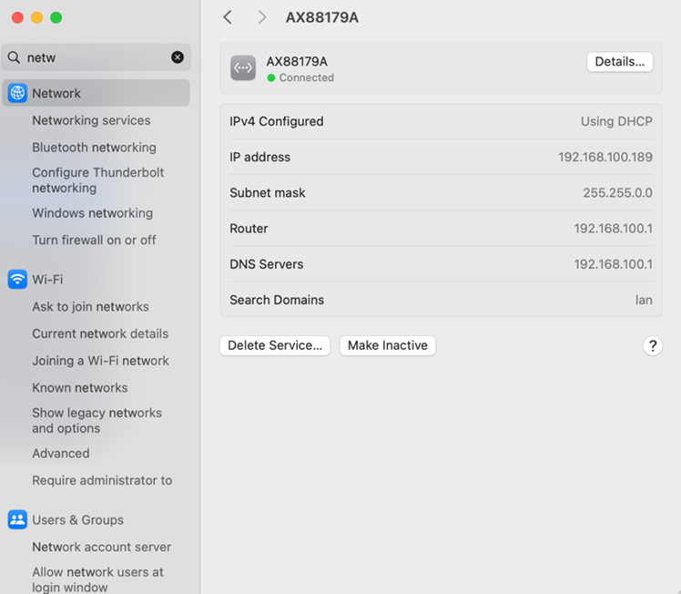 The next step is to create the LAN network that connects to the PC. While still on Network Settings navigate to LAN