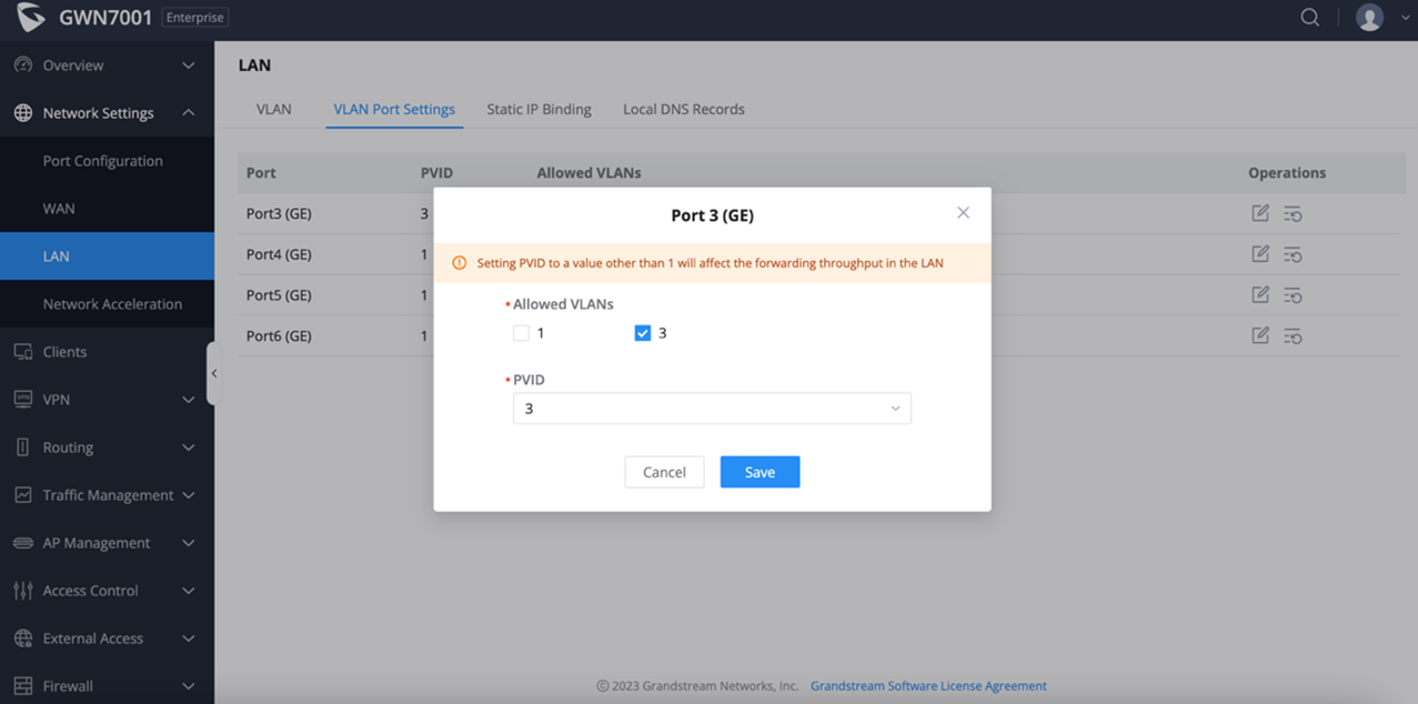 Please note that VLAN1 is the native VLAN and is automatically tagged on all ports. If you don’t want VLAN 1 tagged on your LAN port, click on the VLAN Port Settings and on Port 3 click on the edit button and remove VLAN 1 as the allowed VLAN.