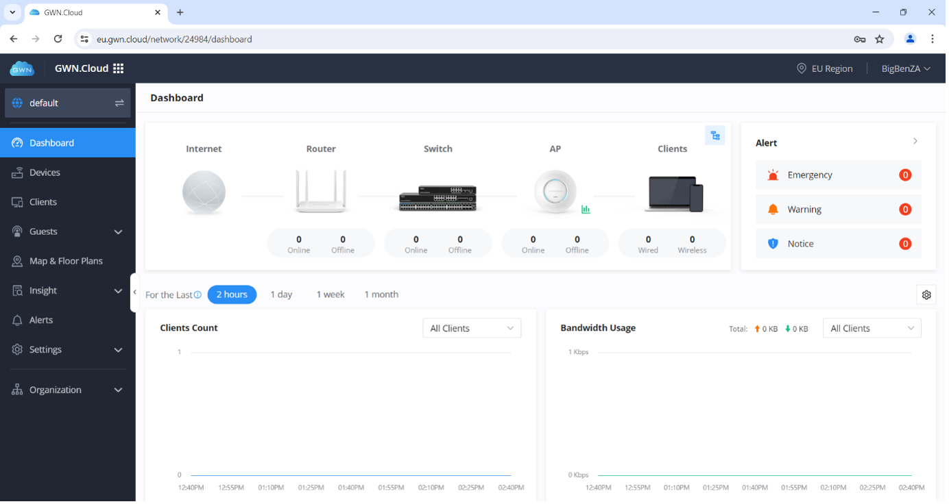 Once you are logged in, you will be presented with the GWN Cloud dashboard:
