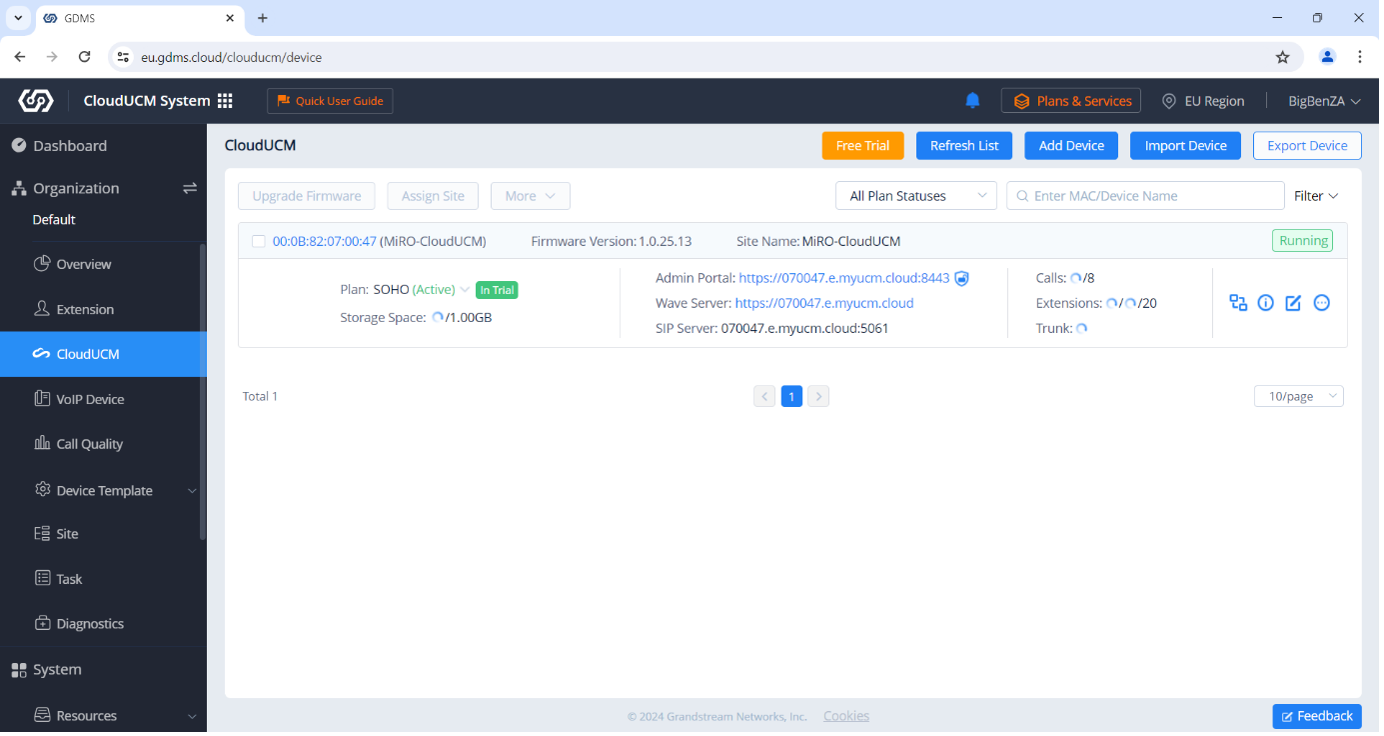 Grandstream integrated GWN Cloud accounts with GDMS and with that, CloudUCM was also added. All of your Grandstream products can now be managed from a single pane of glass. Once your CloudUCM has been linked to your GDMS account, you can head over to https://account.gdms.cloud.