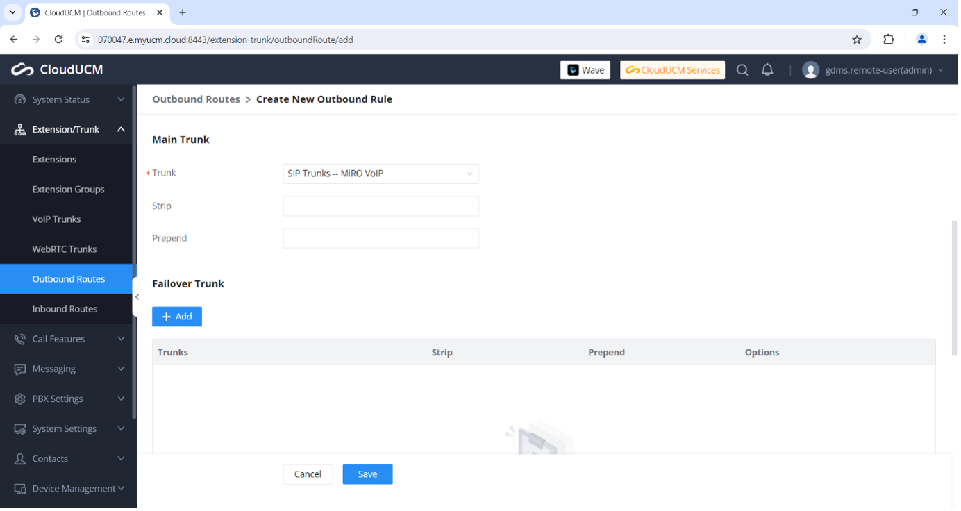 Let’s scroll down until we find Main Trunk. Here we can select the trunk this route will use. We can also Strip and Prepend digits.