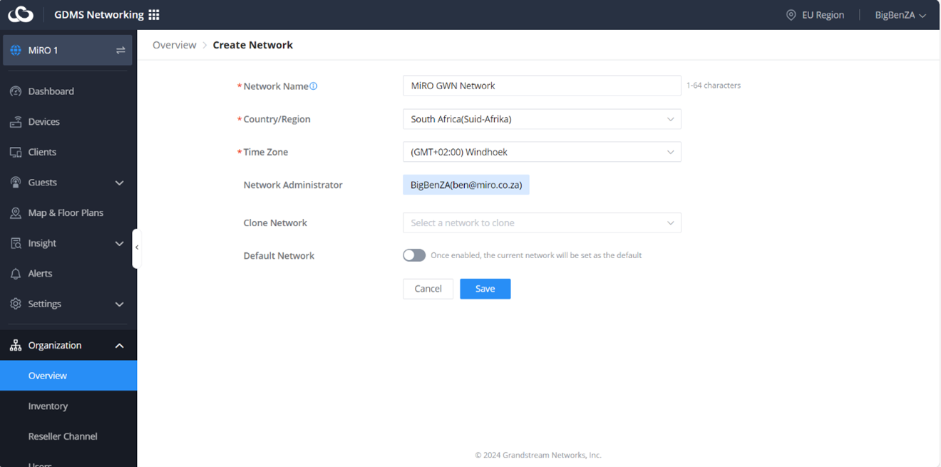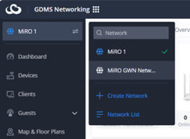 Now that we have created the VLANs. Let’s adopt the router, switch, and Access Point to the GDMS cloud. Once logged into the cloud, let’s create a new network. On the dashboard, click on the networks icon and Create Network: