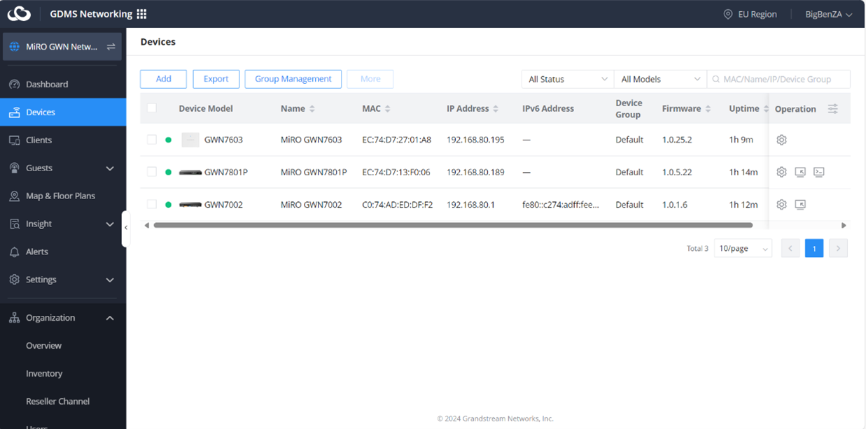 The Grandstream GDMS Cloud is an enterprise-grade management platform designed for Grandstream’s GWN series of Wi-Fi Access Points, routers, and switches. It offers centralized network management, allowing administrators to configure, monitor, and troubleshoot their network infrastructure from anywhere via a web or mobile app. The platform supports unlimited scalability, making it ideal for managing multiple sites and large deployments efficiently.