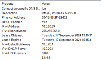 Now that the switch port is configured, let's connect to the SSIDs and see what IPs we get: