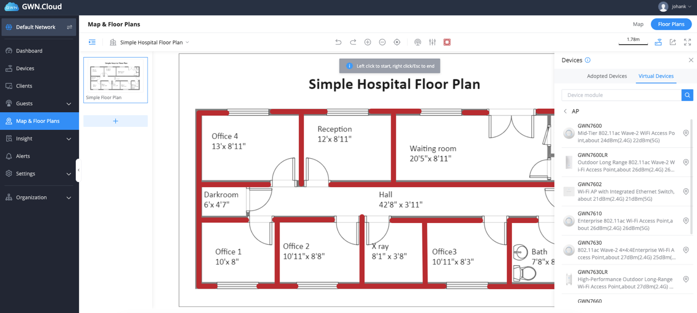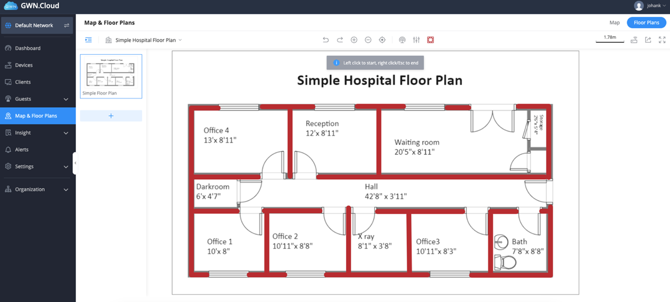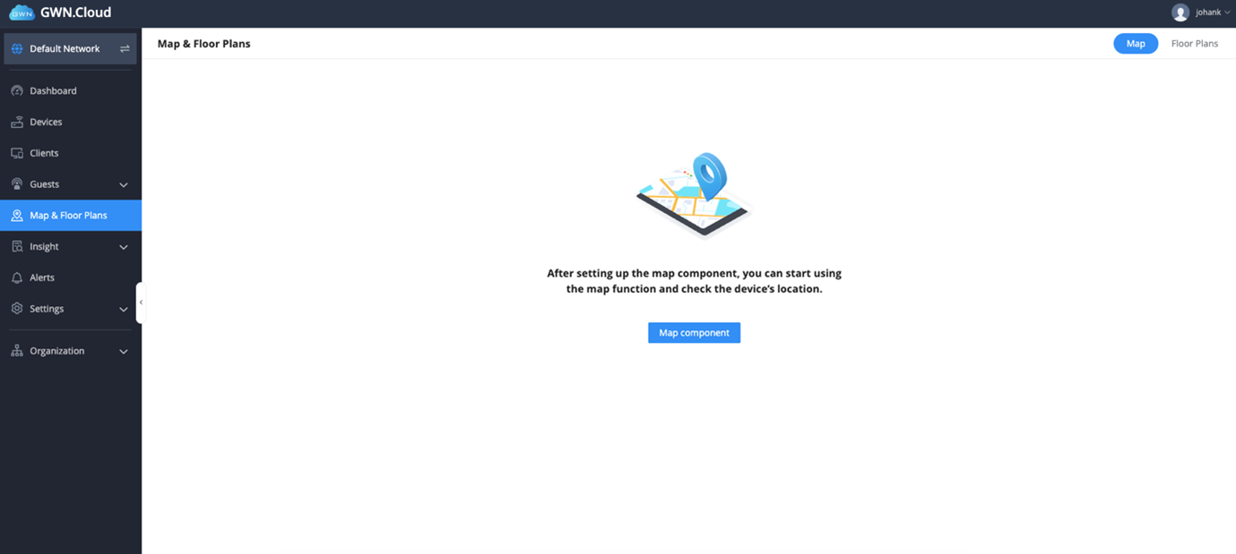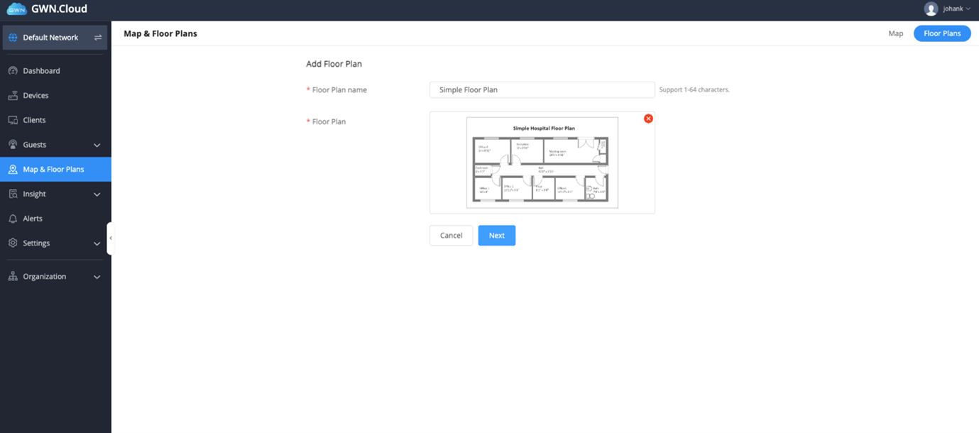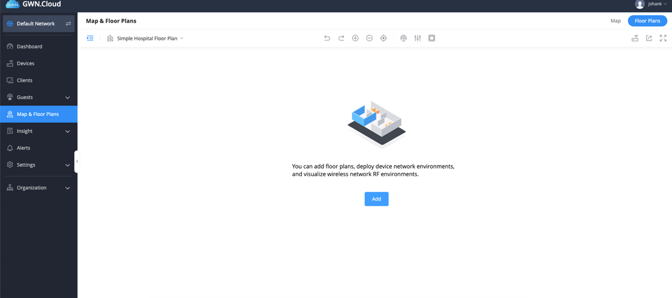 1. Log into GWN.Cloud and navigate to Maps and floorplan – toggle to floor plan.