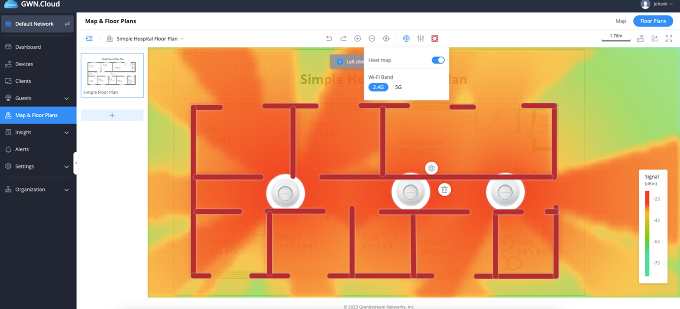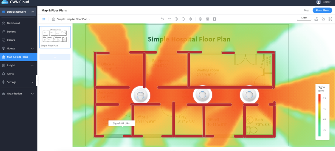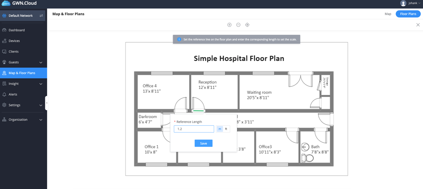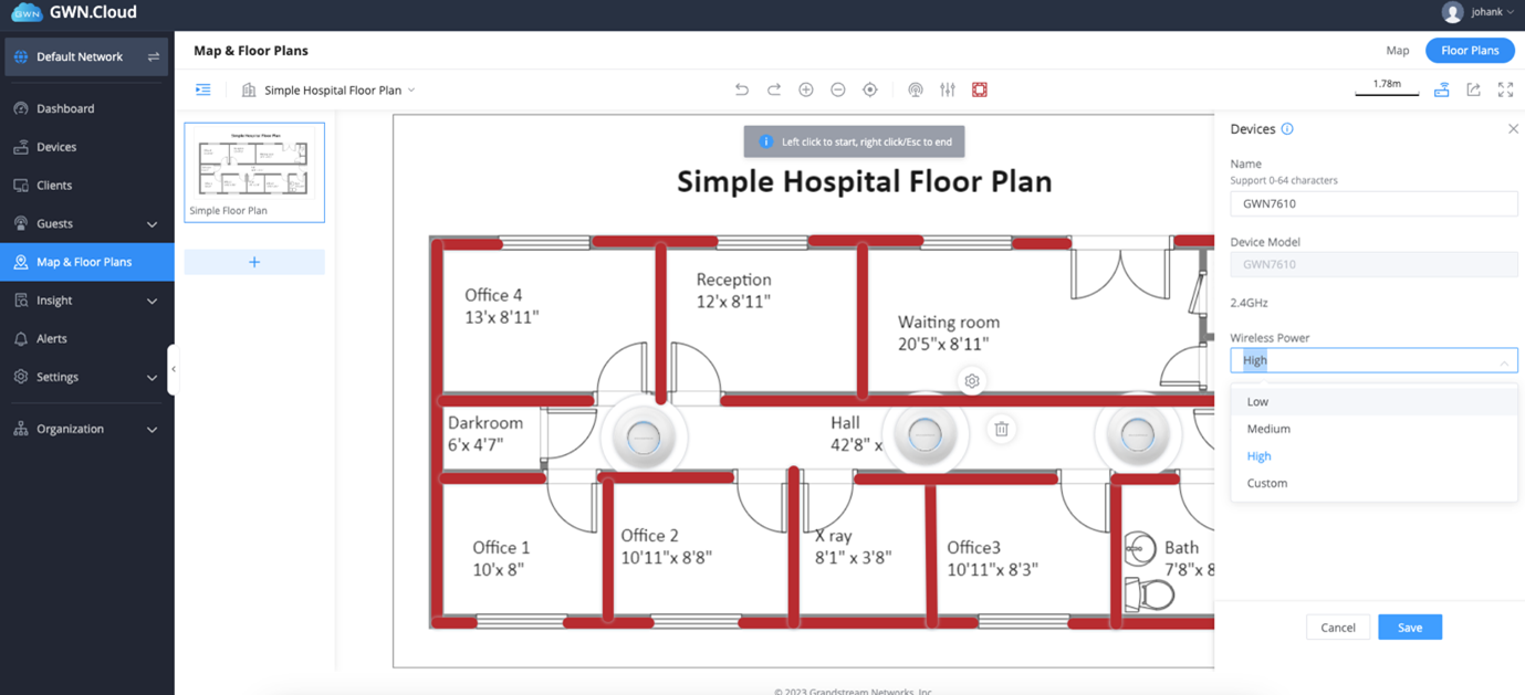 1. Log into GWN.Cloud and navigate to Maps and floorplan – toggle to floor plan.