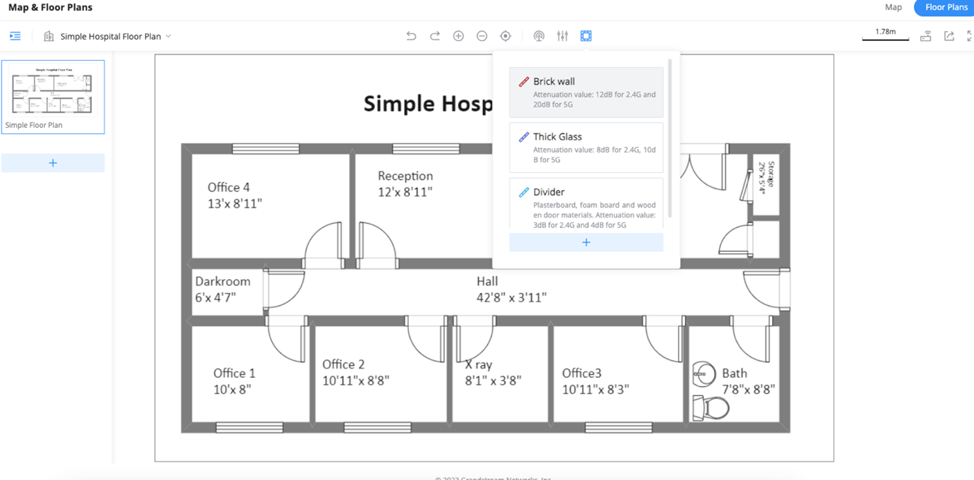 5. Next, add walls based on the material – this will ensure that attenuation is added to the floor plan.