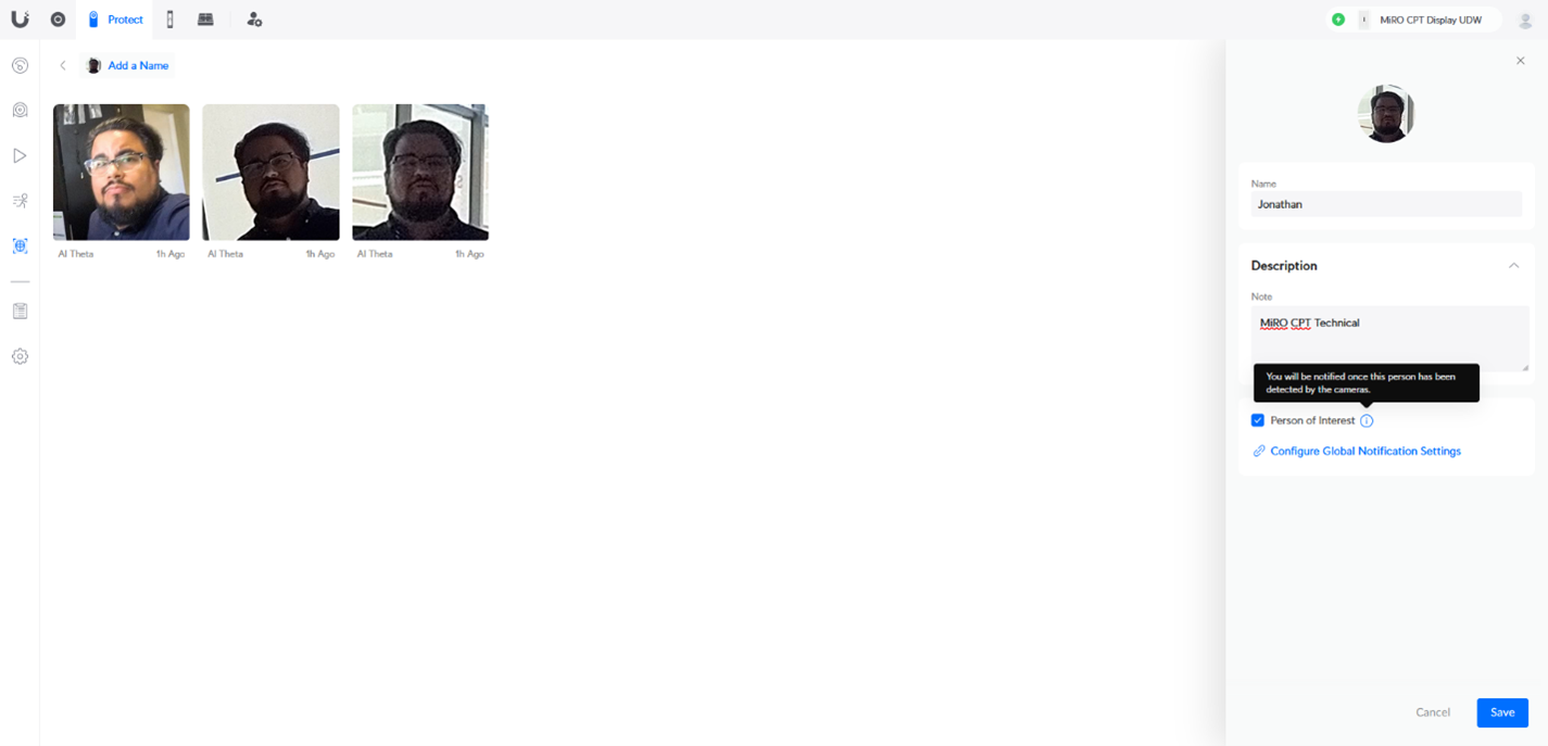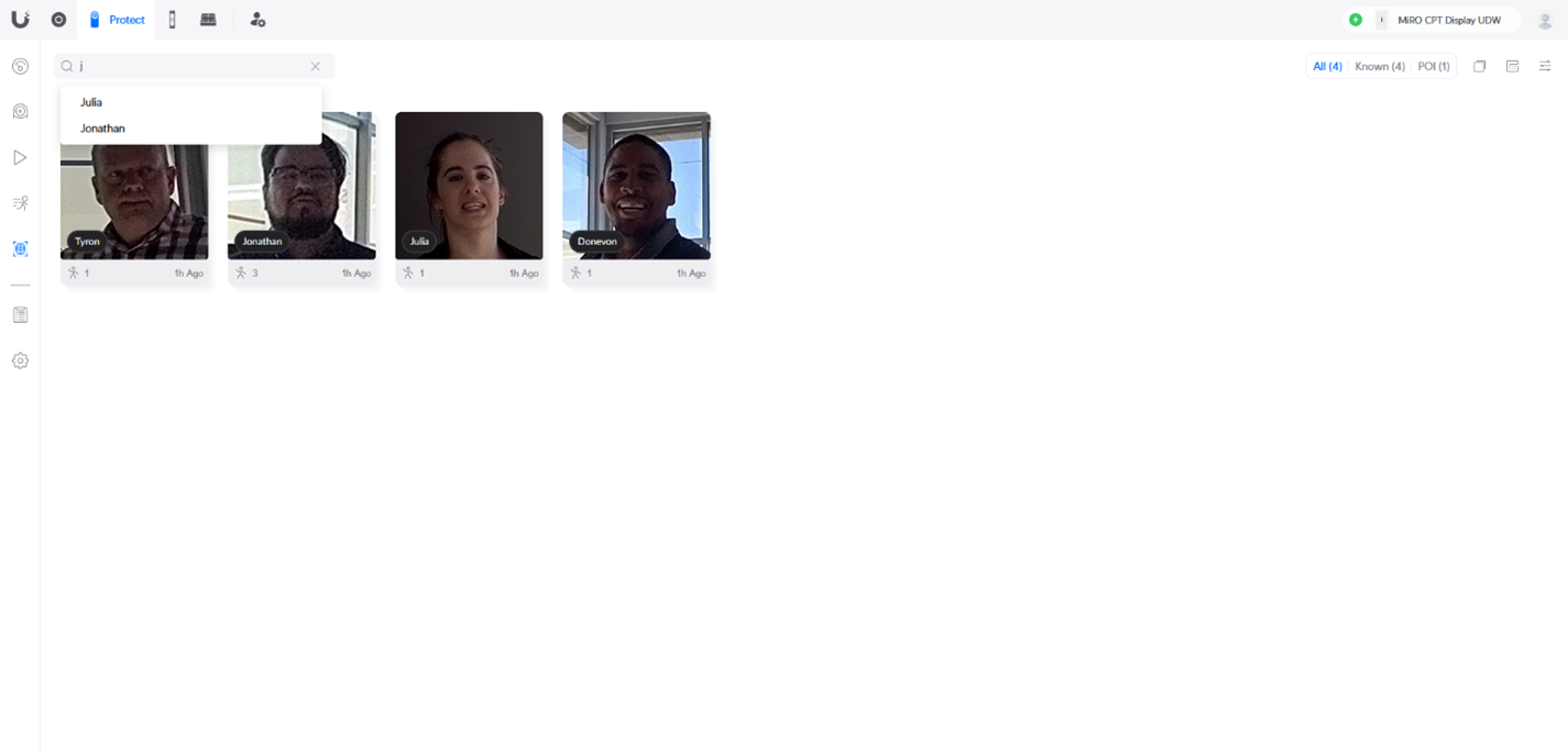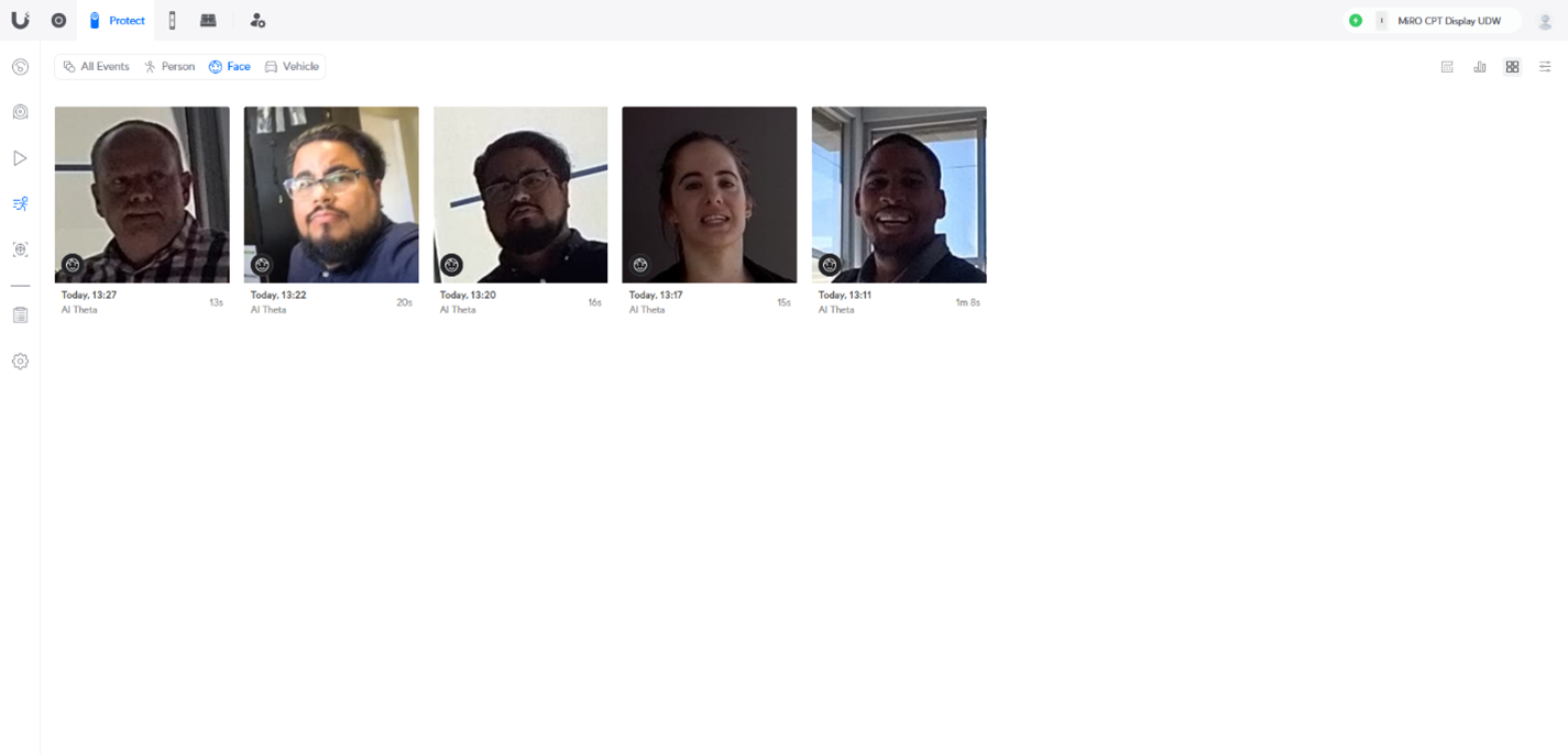 This will show us all the faces that our UniFi Protect system has been able to detect based on the footage captured with Smart Detection enabled.