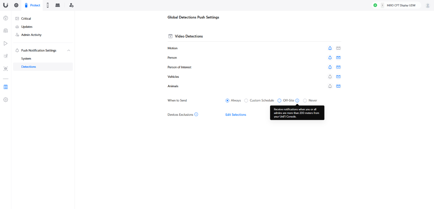 Off-site gives us the option to only be notified of people of interest once we have left the site to reduce the number of notifications we will receive.