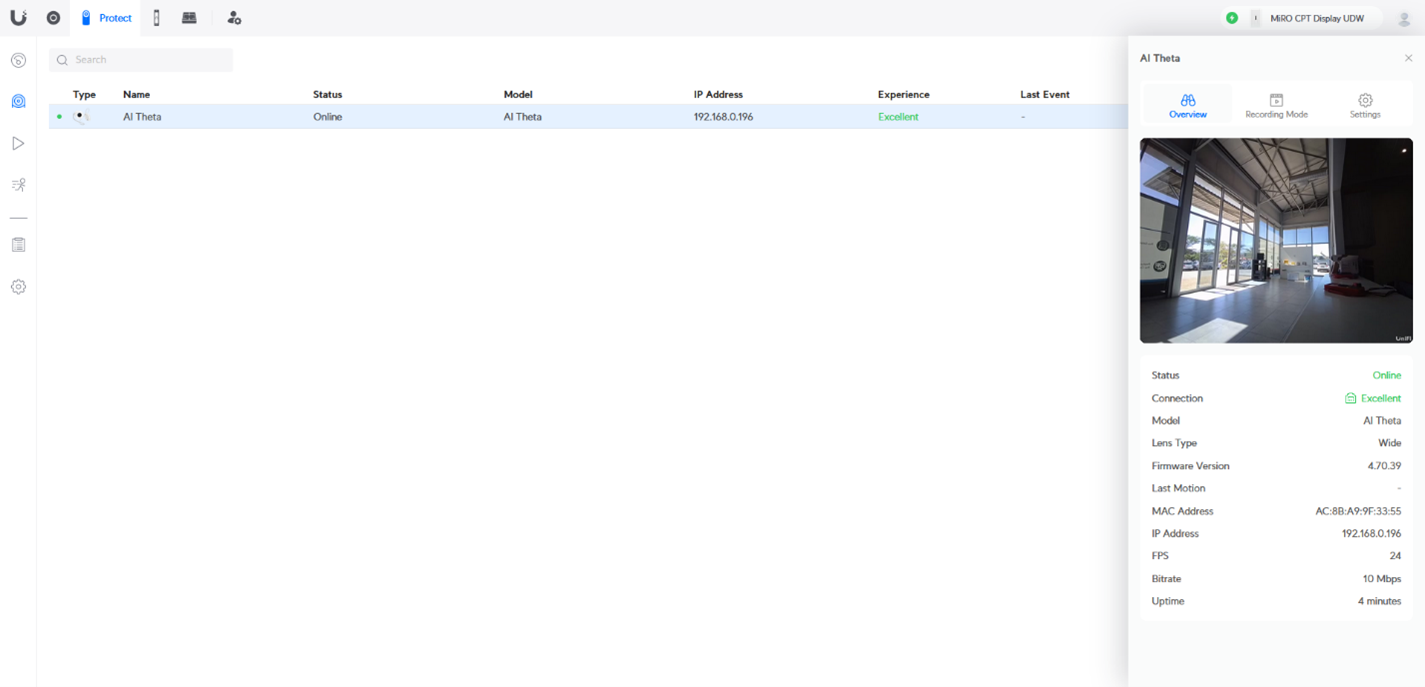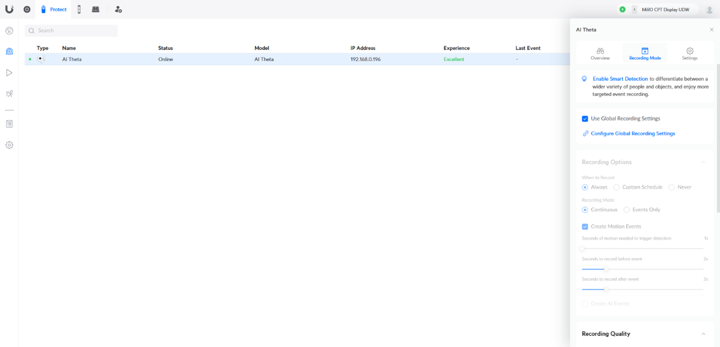 Once we have adopted the camera, we need to click the “Recording Mode” sub-tab.