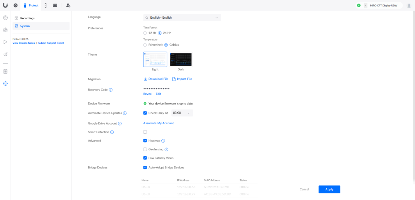 Log into your UniFi Protect compatible device. I am using the UniFi Dream Wall for demonstration purposes.